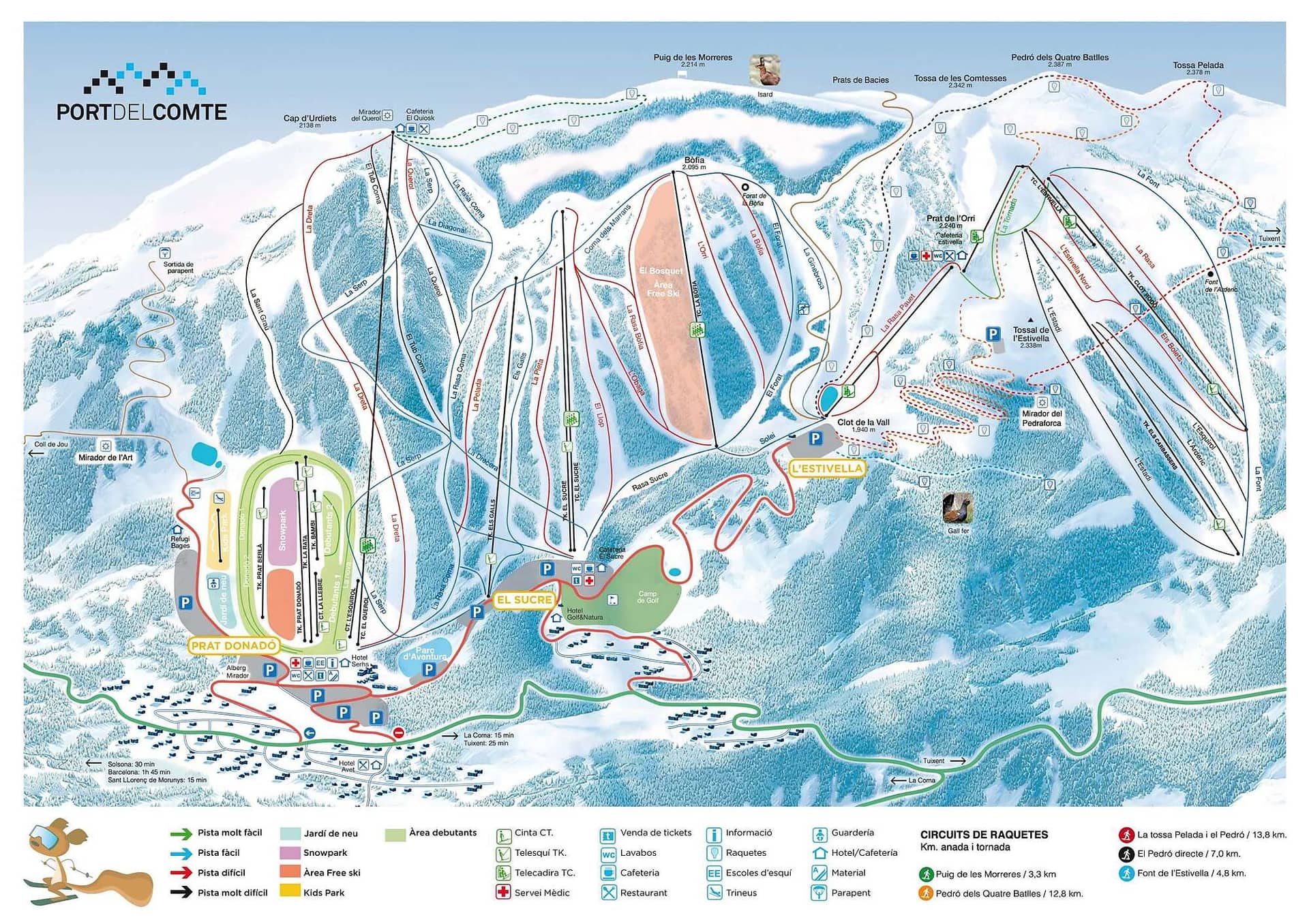 Port del Comte Port del Compte, situada en el Solsonès, es una estación muy tranquila, con un ambiente agradable y de carácter familiar. Hay una gran variedad de pistas, organizadas por niveles de dificultad. Muy recomendable para todos los niveles.